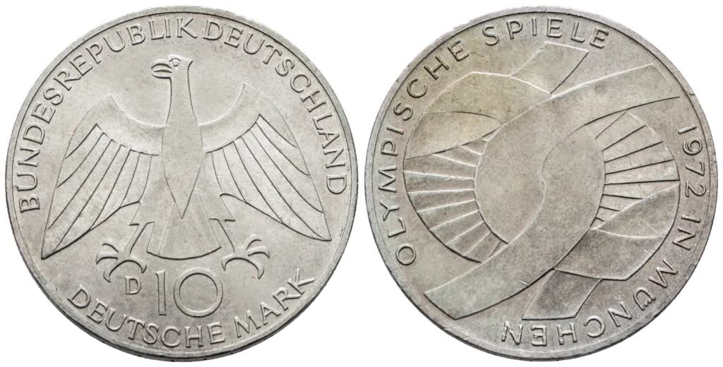 Lot 112 | GERMANIA. 10 marchi 1972 D "Giochi olimpici Monaco". KM 131; Ag; 15,5gr qFDC