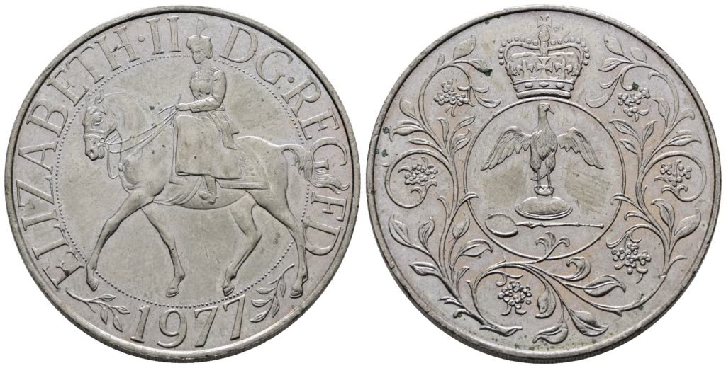 INGHILTERRA. Elisabetta II. 25 pence 1977 "giubileo d'argento 1952-1977". KM 920; Cn; 28,28gr. Leggere ossidazioni. PROOF