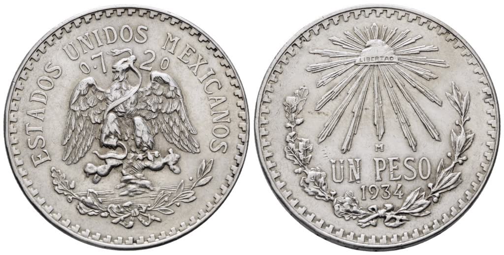 MESSICO. 1 peso 1934. KM 455; Ag; 16,66gr SPL/FDC