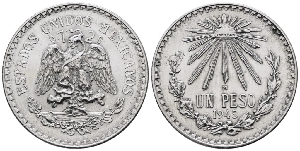 MESSICO. 1 peso 1945. KM 455; Ag; 16,66gr SPL
