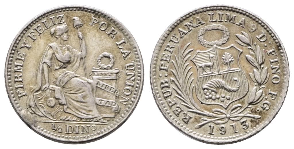PERU'. 1/2 dino 1/20 sol 1913. KM 206; Ag; 1,25gr qSPL