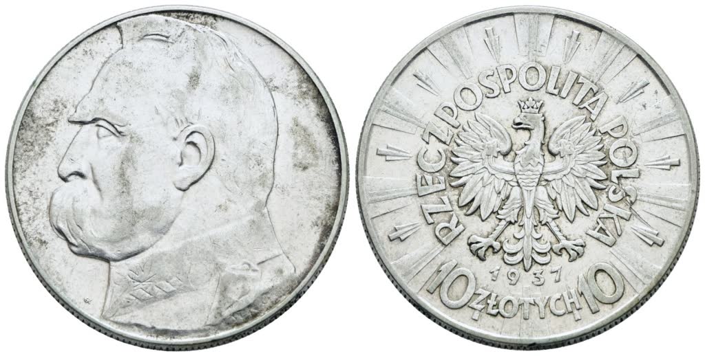 POLONIA. 10 zlotych 1937. Ag; 22gr; C 29; BB/SPL