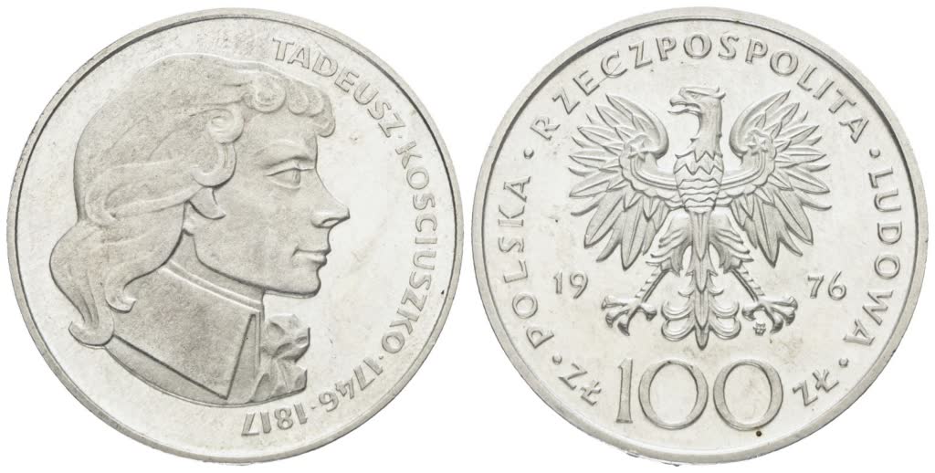 POLONIA. 100 zlotych 1976 "Kosciuszko". Ag; 16,5gr: Y 82; FDC