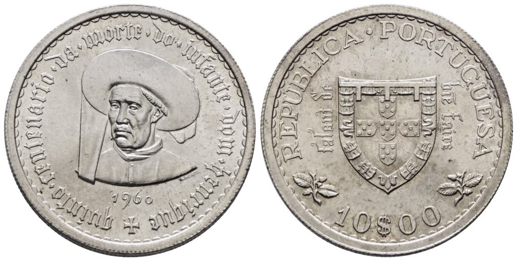 PORTOGALLO. 10 escudos 1960 "Enrico il navigatore". KM 588; Ag; 12,5gr FDC