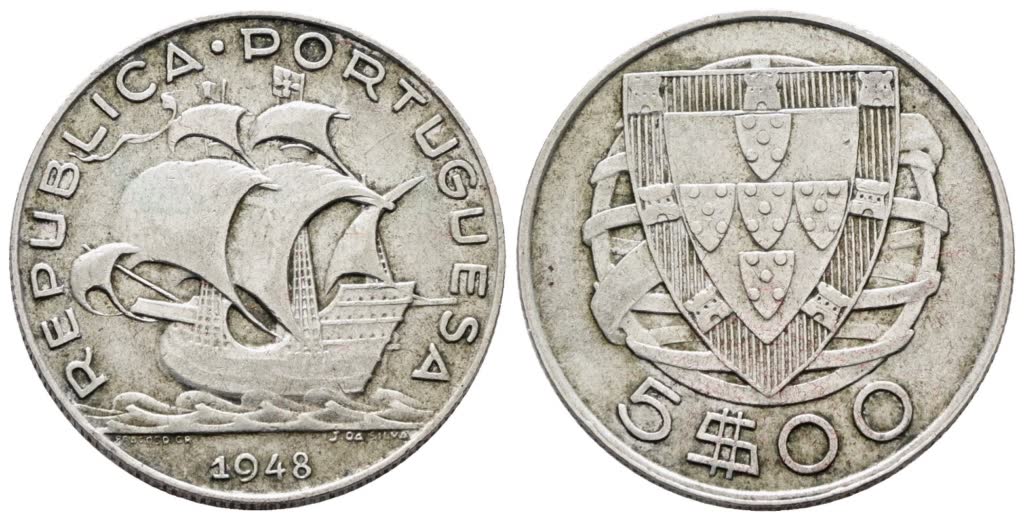 PORTOGALLO. 5 escudos 1948. KM 581; Ag; 7gr BB+