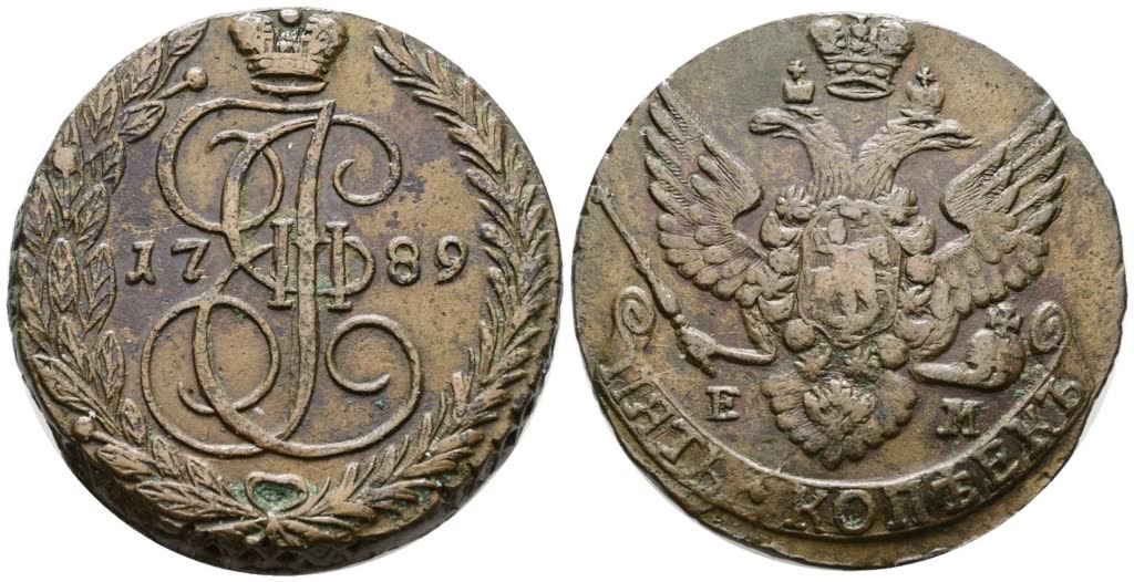 Lot 216 | RUSSIA. Caterina II (1762-1796). 5 copechi 1789. Cu; C 59; 51gr; NC; BB/SPL