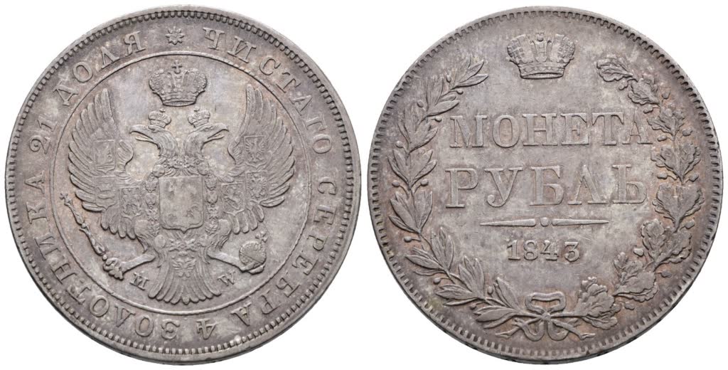 RUSSIA. VARSAVIA. Nicola I (1825-1855). Rublo 1843 (sigle M W). Ag; 20,43gr; C 168; Raro; Q.SPL
