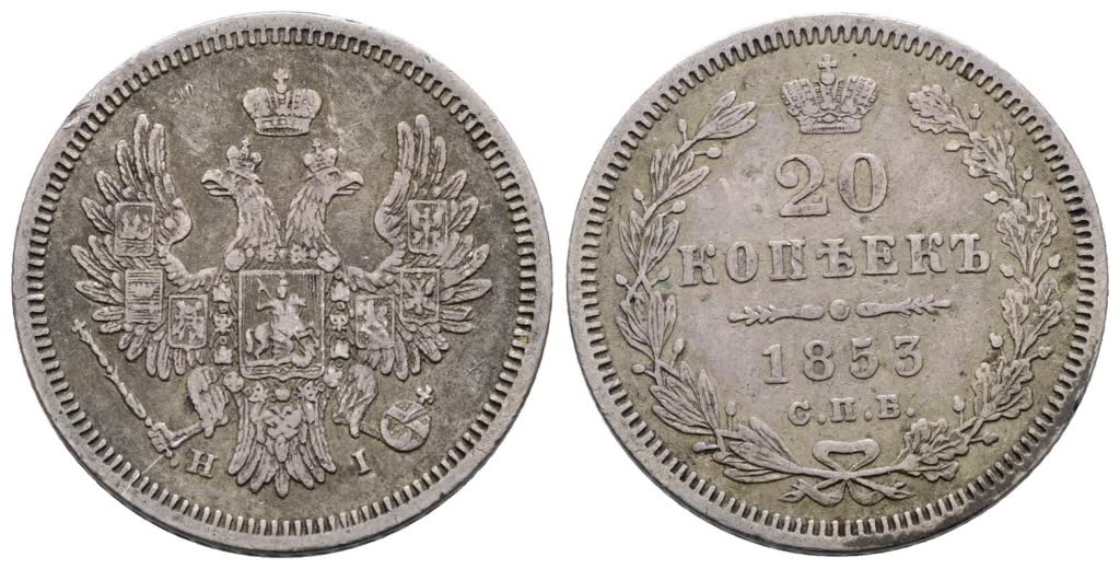 Lot 241 | RUSSIA. SAN PIETROBURGO. Nicola I (1825-1855). 20 copechi 1853. Ag; 4,14gr; C 165; BB/SPL