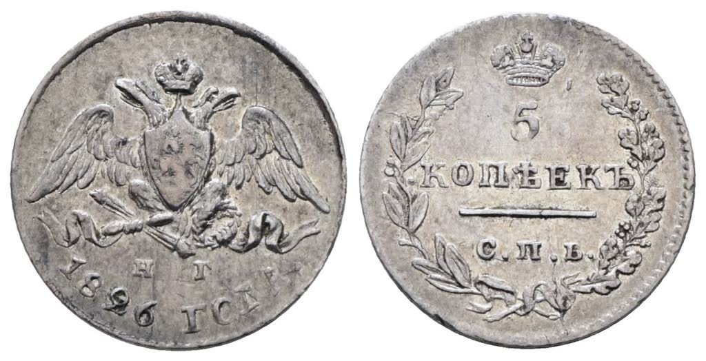 Lot 243 | RUSSIA. SAN PIETROBURGO. Nicola I (1825-1855). 5 copechi 1826. Ag; 1,04gr; C 156; BB/SPL