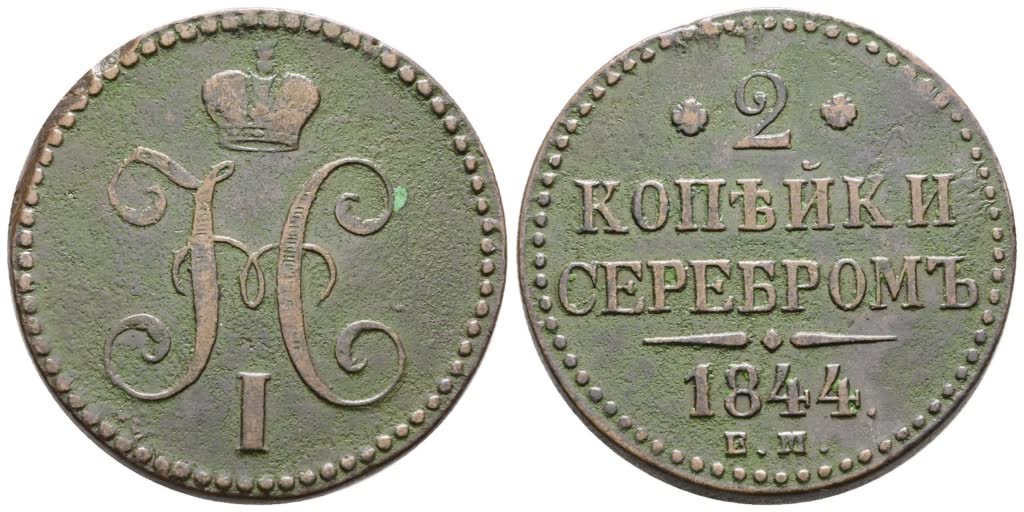 RUSSIA. EKATERININBURG. Nicola I (1825-1855). 2 copechi 1844. Cu; 20,48gr; C 145; BB+