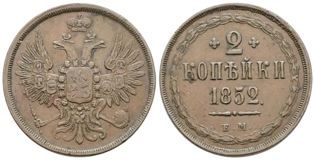 RUSSIA. EKATERININBURG. Nicola I (1825-1855). 2 copechi 1852. Cu; 10,4gr; C 150; BB/SPL