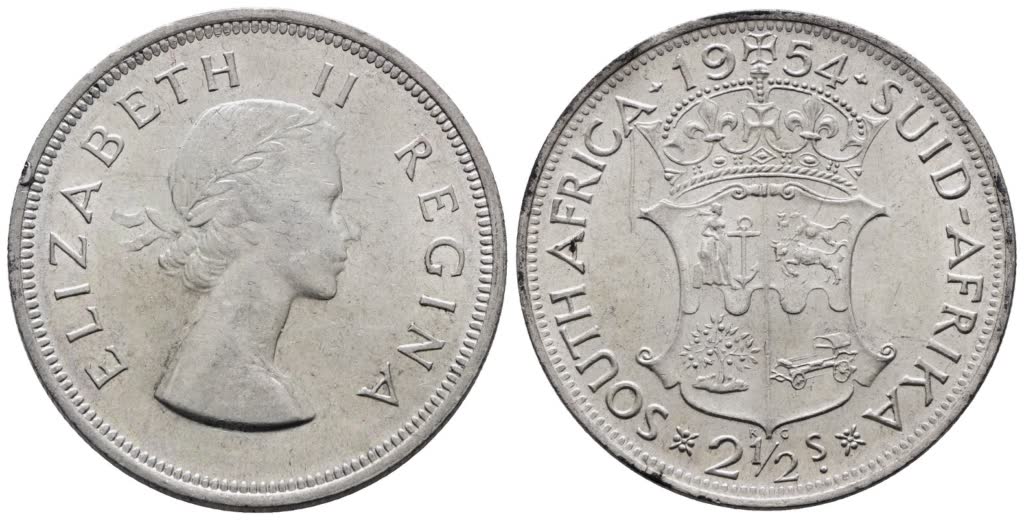 SUDAFRICA. Elisabetta II (1952-2022). 2 1/2 scellini 1954. KM 51; Ag; 14,14gr SPL/FDC