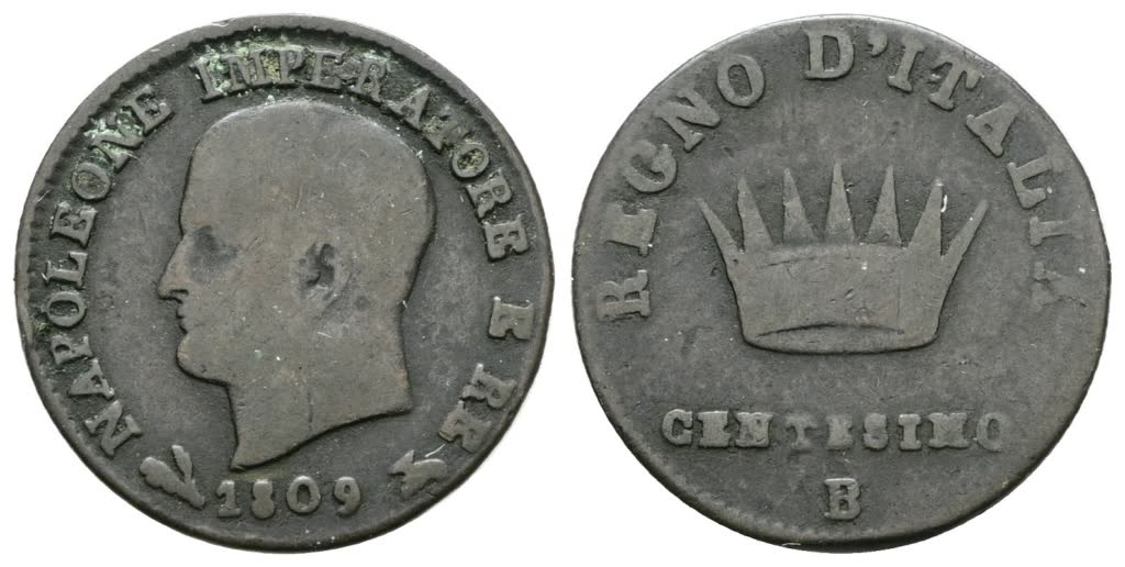BOLOGNA. Regno d'Italia. Napoleone I (1805-1814). 1 centesimo 1809. Cu; 2,1gr; Gig. 237; Raro; MB