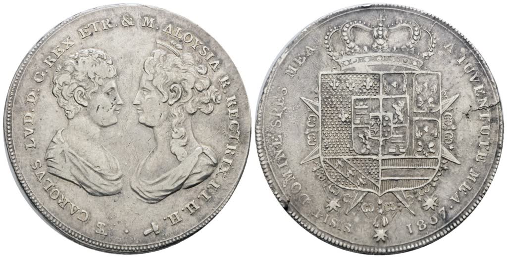 FIRENZE. GRANDUCATO DI TOSCANA. Carlo Ludovico di Borbone (1803-1807). Francescone 1807. Ag; 27,5gr; Gig.14; BB+