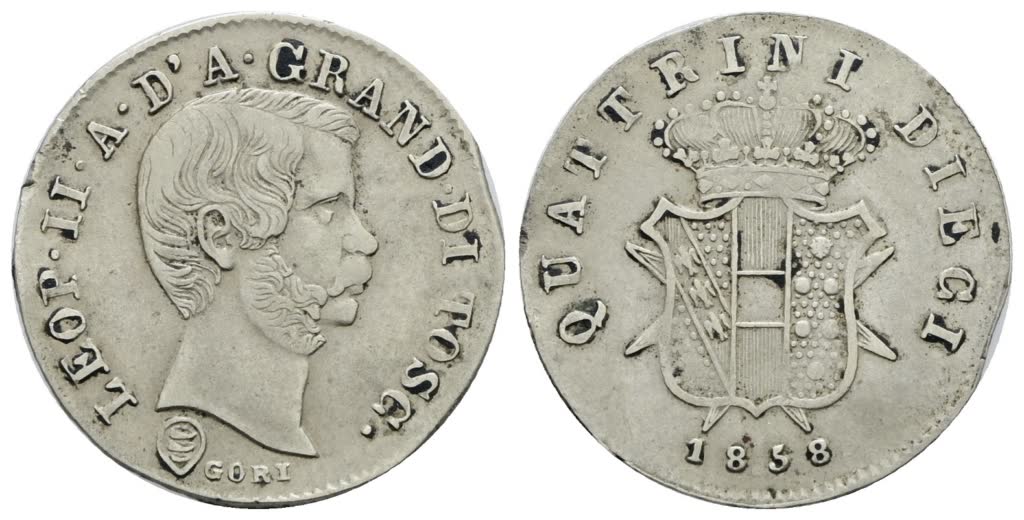 Lot 300 | FIRENZE. GRANDUCATO DI TOSCANA. Leopoldo II (1824-1859). 10 quattrini 1858. Mi; 2gr; Gig.67; NC; BB+