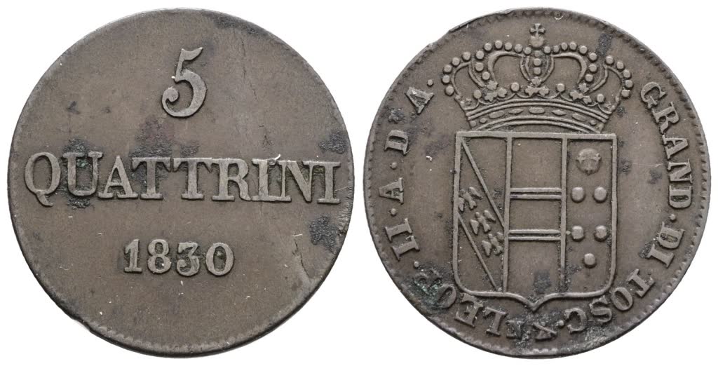 FIRENZE. GRANDUCATO DI TOSCANA. Leopoldo II (1824-1859). 5 quattrini 1830. Mi; 3,9gr; Gig.72; BB+