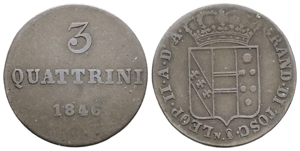Lot 303 | FIRENZE. GRANDUCATO DI TOSCANA. Leopoldo II (1824-1859). 3 quattrini 1846. Mi; 2,15gr; Gig.89; Raro; BB
