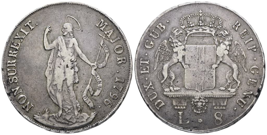 GENOVA. Dogi biennali (1637-1797). 8 lire 1796. Ag; 33,10gr; MIR 309/5. BB