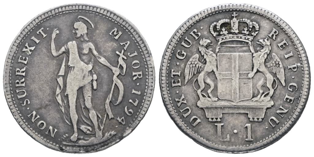 GENOVA. Dogi Biennali (terza fase, 1637-1797). 1 lira 1794 . Ag; 4,14gr; Mir 354/a1;; BB