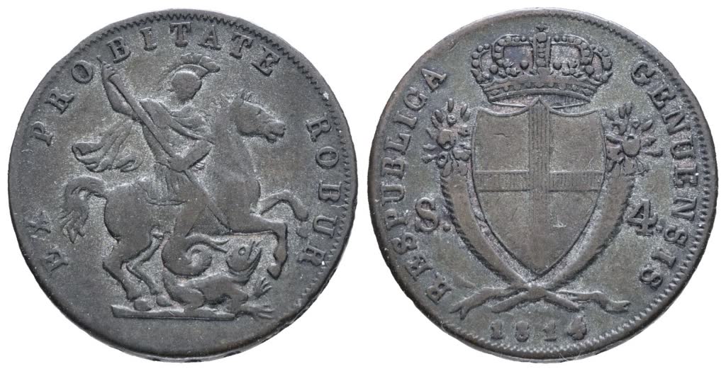 Lot 313 | GENOVA. Repubblica Genovese (1814). 4 soldi 1814. Mi; 4gr; Mir 393; BB