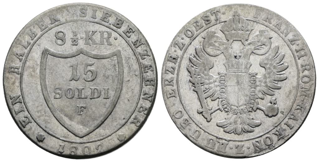 GORIZIA. Francesco II d'Asburgo (1797-1805). 15 soldi 1802 (F, Hall). Mi; 5,2gr; Gig.2; BB