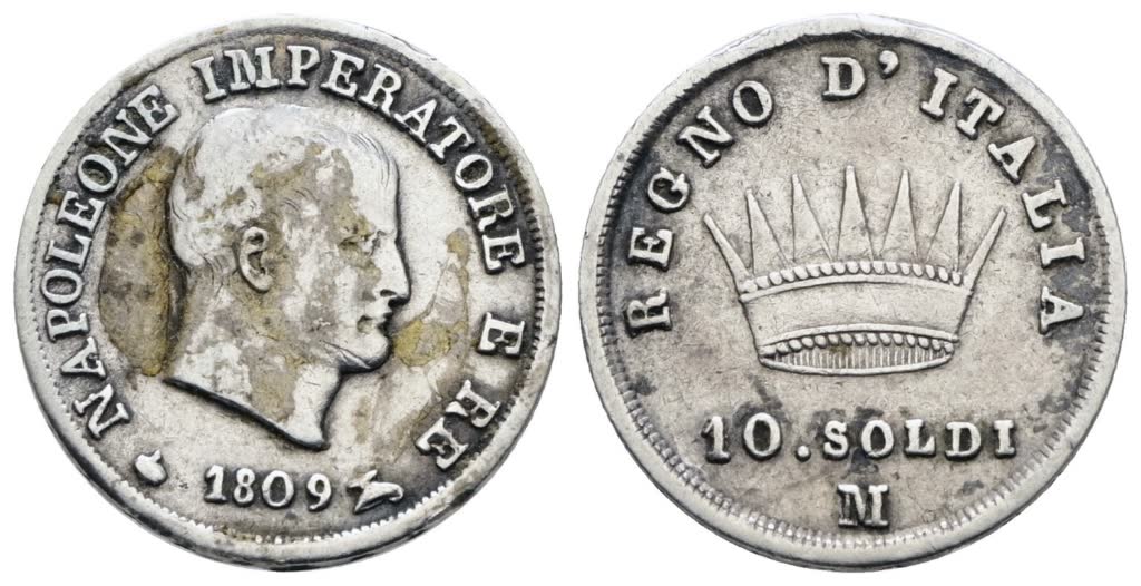 MILANO. Regno d'Italia. Napoleone I (1805-1814). 10 soldi 1809. Ag; 2,5gr; Gig.176; QBB