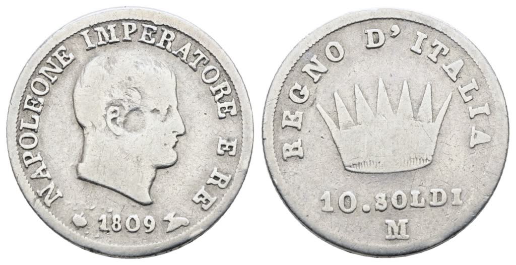 MILANO. Regno d'Italia. Napoleone I (1805-1814). 10 soldi 1809. Ag; 2,5gr; Gig.176; MB