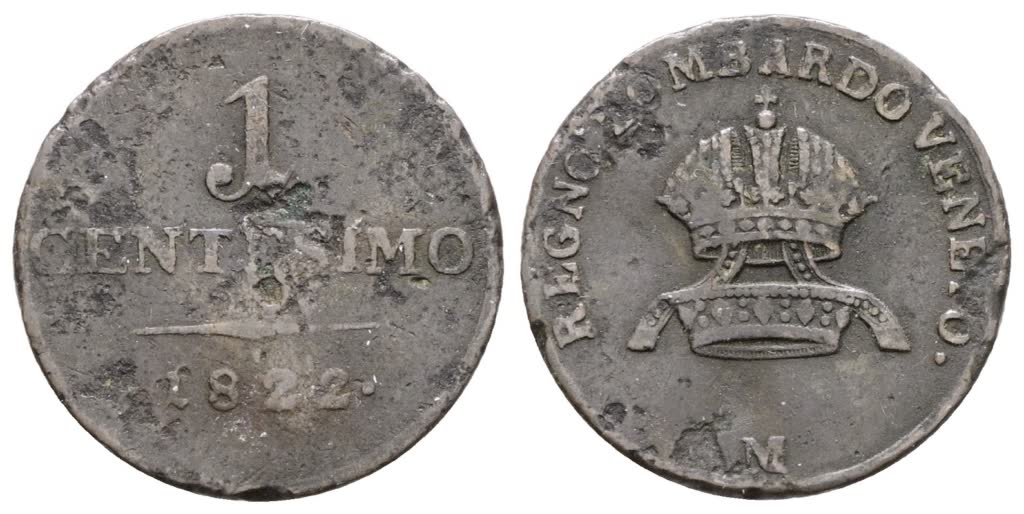 MILANO. REGNO LOMBARDO VENETO. Francesco I d'Asburgo (1815-1835). 1 centesimo 1822. Cu; 1,75gr; Gig.98; NC; MB