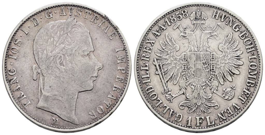 Lot 389 | MILANO. REGNO LOMBARDO VENETO. Francesco Giuseppe (1848-1866). Fiorino 1858. Ag; 12,35gr; Gig.81; NC; BB