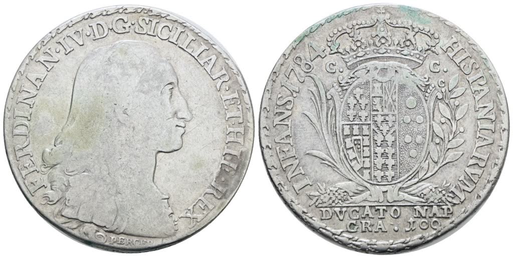 NAPOLI. REGNO DI NAPOLI. Ferdinando IV di Borbone (1759-1799 I per.). Ducato 100 grana 1784. Ag; 22,5gr; Gig.77; RR; MB/BB