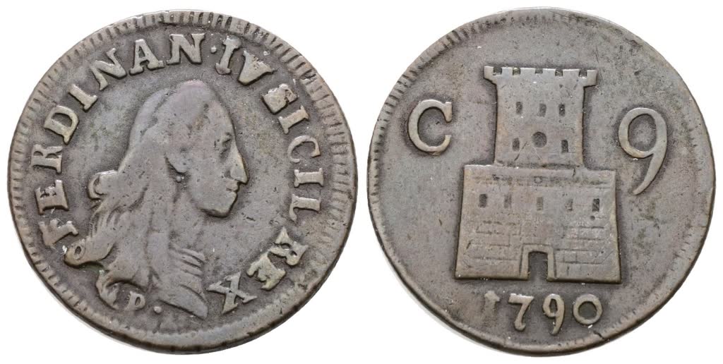 NAPOLI. REGNO DI NAPOLI. Ferdinando IV di Borbone (1759-1799 I per.). 9 cavalli 1790. Cu; 4,7gr; Gig.149; NC; BB
