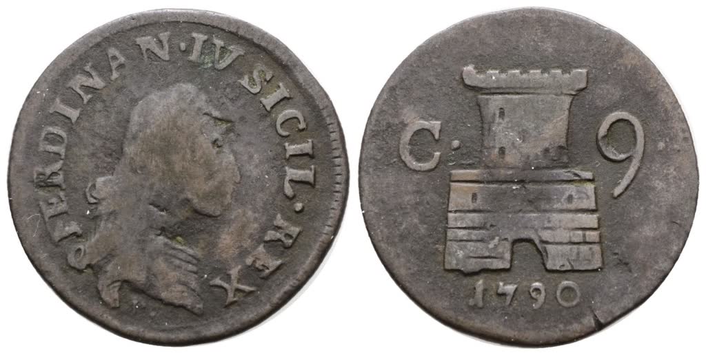 NAPOLI. REGNO DI NAPOLI. Ferdinando IV di Borbone (1759-1799 I per.). 9 cavalli 1790. Cu; 4,7gr; Gig.149; NC; MB/BB