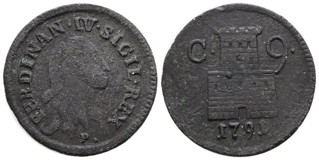 NAPOLI. REGNO DI NAPOLI. Ferdinando IV di Borbone (1759-1799 I per.). 9 cavalli 1791. Cu; 4,7gr; Gig.150; MB/BB