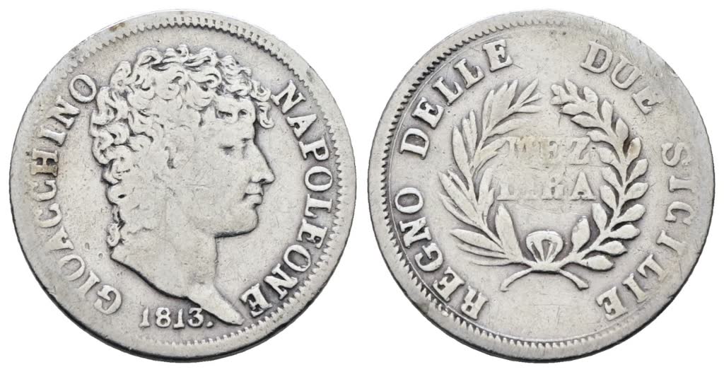 NAPOLI. REGNO DELLE DUE SICILIE. Gioacchino Napoleone (1808-1815). Mezza lira 1813. Ag; 2,5gr; Gig.17; Raro; MB