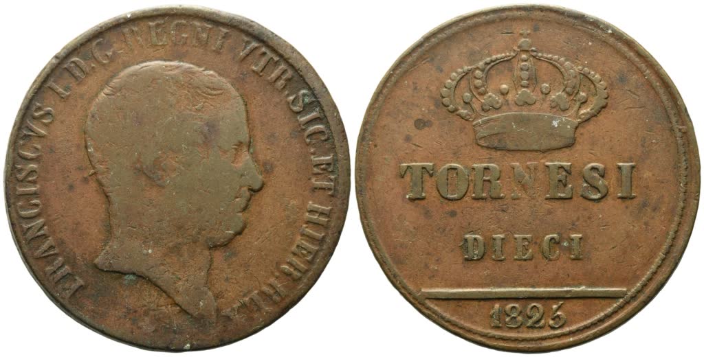NAPOLI. REGNO DELLE DUE SICILIE. Francesco I di Borbone (1825-1830). 10 Tornesi 1825. Cu (31,60 g; 38,2 mm). Gig.14. Q.BB