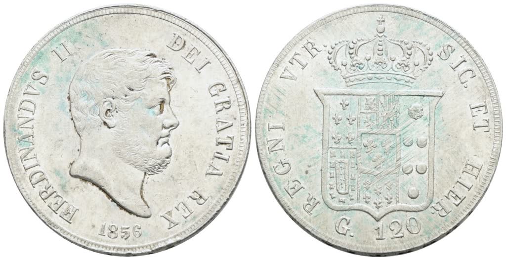 NAPOLI. REGNO DELLE DUE SICILIE. Ferdinando II di Borbone (1830-1859). Piastra 120 grana 1856. Ag; 27,5gr; Gig.87; SPL