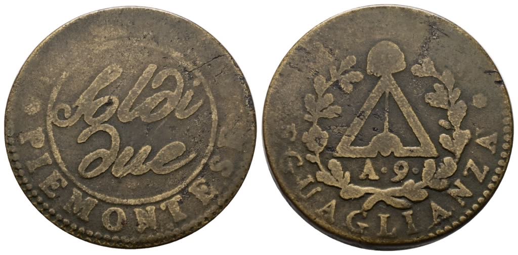 Lot 524 | TORINO. Repubblica Piemontese (1798-1799). 2 soldi anno 9. Cu; 10,7gr; Gig.3; Q.BB