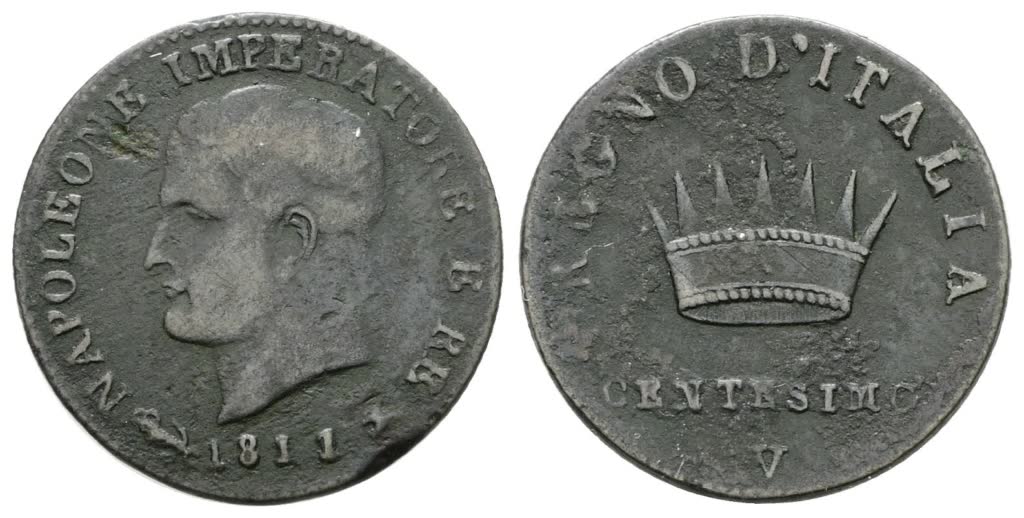 VENEZIA. Regno d'Italia. Napoleone I (1805-1814). 1 centesimo 1811. Cu; 2,1gr; Gig. 244; Raro; MB
