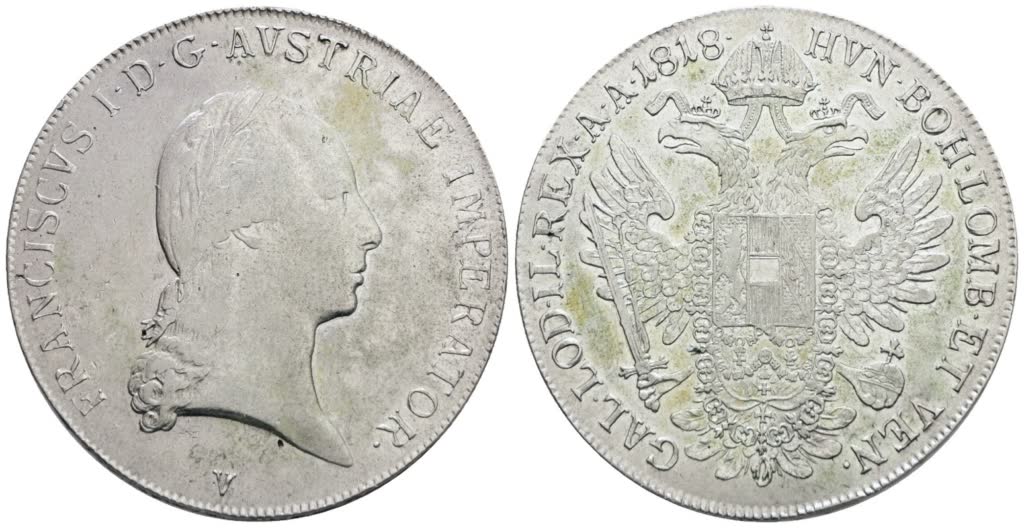 Lot 535 | VENEZIA. REGNO LOMBARDO VENETO. Francesco I d'Asburgo (1815-1835). Tallero di convenzione 1818. Ag; 28gr; Gig.104; NC; BB/SPL, fondi brillanti.