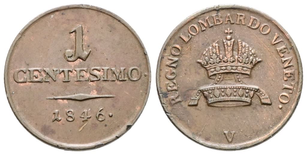 VENEZIA. REGNO LOMBARDO VENETO. Ferdinando I d'Asburgo (1835-1848). 1 centesimo 1846. Cu; 1,75gr; Gig.109; SPL+