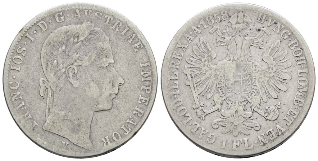 VENEZIA. REGNO LOMBARDO VENETO. Francesco Giuseppe (1848-1866). Fiorino 1858. Ag; 12,35gr; Gig.82; NC; Q.BB