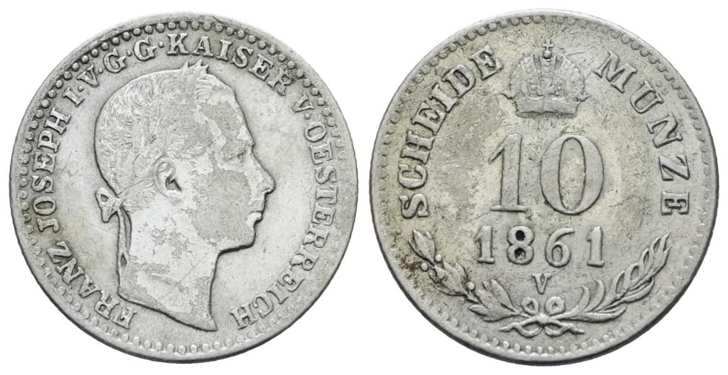 Lot 540 | VENEZIA. REGNO LOMBARDO VENETO. Francesco Giuseppe (1848-1866). 10 kreuzer 1861. Ag; 2gr; Gig.109; Raro; BB