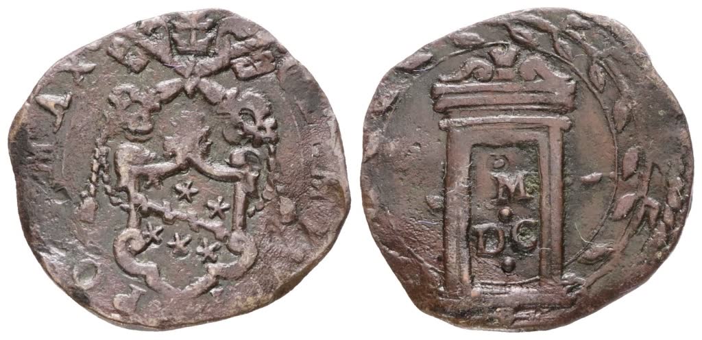 STATO PONTIFICIO. ROMA. Clemente VIII (1592-1605). Quattrino 1600 "giubileo". Cu; 2.6gr; MIR 1457/2; BB