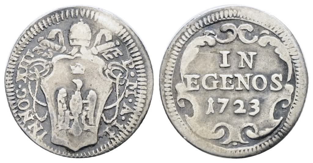 STATO PONTIFICIO. ROMA. Innocenzo XIII (1721-1724). Mezzo grosso 1723. Ag; 0,72gr; Munt.16; MIR 2405/1 ; RR; BB