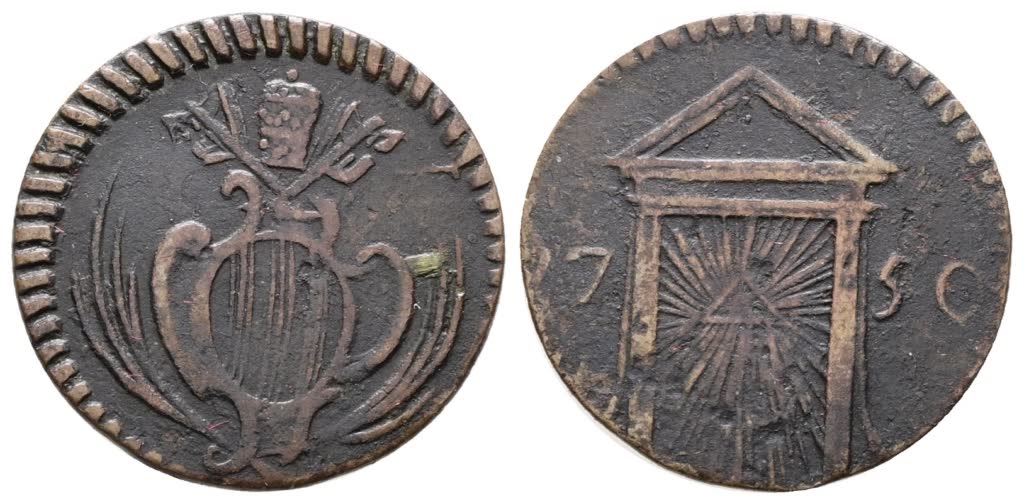 STATO PONTIFICIO. RAVENNA. Benedetto XIV (1740-1758). Quattrino anno Santo 1750. Munt 712. CU; 1,83gr. BB