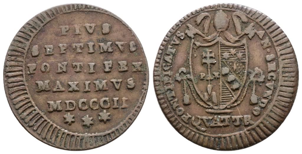 Lot 665 | STATO PONTIFICIO. ROMA. Pio VII (1800-1823). Quattrino 1802. Cu; 2,4gr; Gig.70; BB+