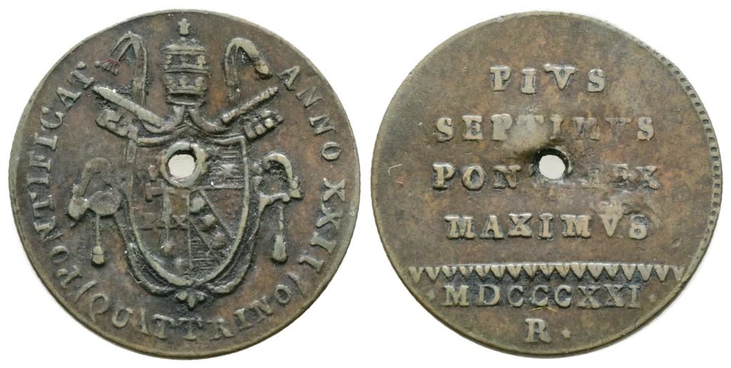 STATO PONTIFICIO. ROMA. Pio VII (1800-1823). Quattrino 1821. Gig.79; Cu; 2,4gr. Raro. Foro centrale. BB