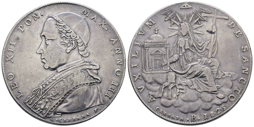 STATO PONTIFICIO. BOLOGNA. Leone XII (1823-1829). Scudo 1825. Ag; 26,43gr; Gig.9; BB