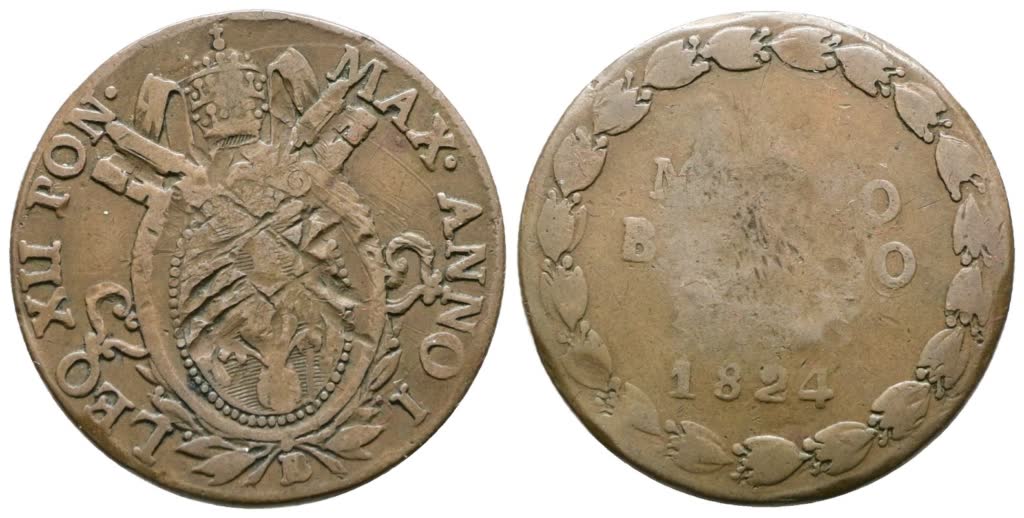 STATO PONTIFICIO. BOLOGNA. Leone XII (1823-1829). Mezzo baiocco 1824. Gig.11; Cu; 5,93gr.. MB