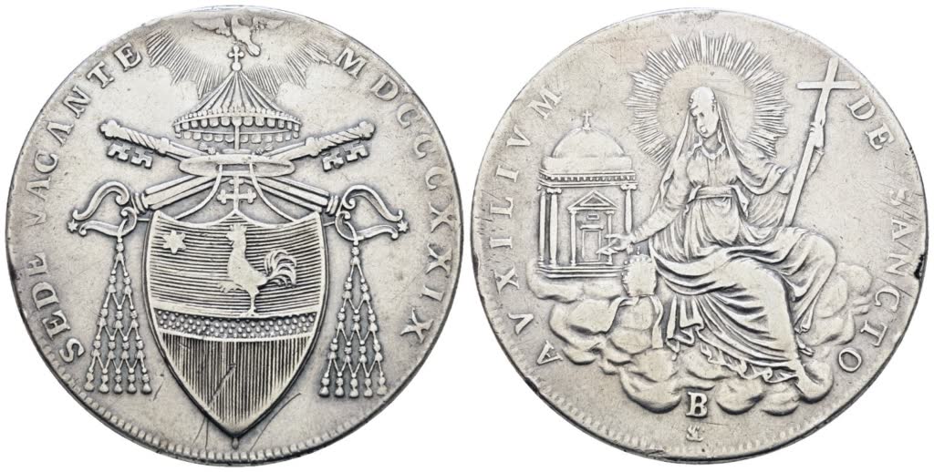 STATO PONTIFICIO. BOLOGNA. Sede Vacante 1829. Scudo 1829. Ag; 26,43gr; NC; Gig.4; Q.BB, ex mount